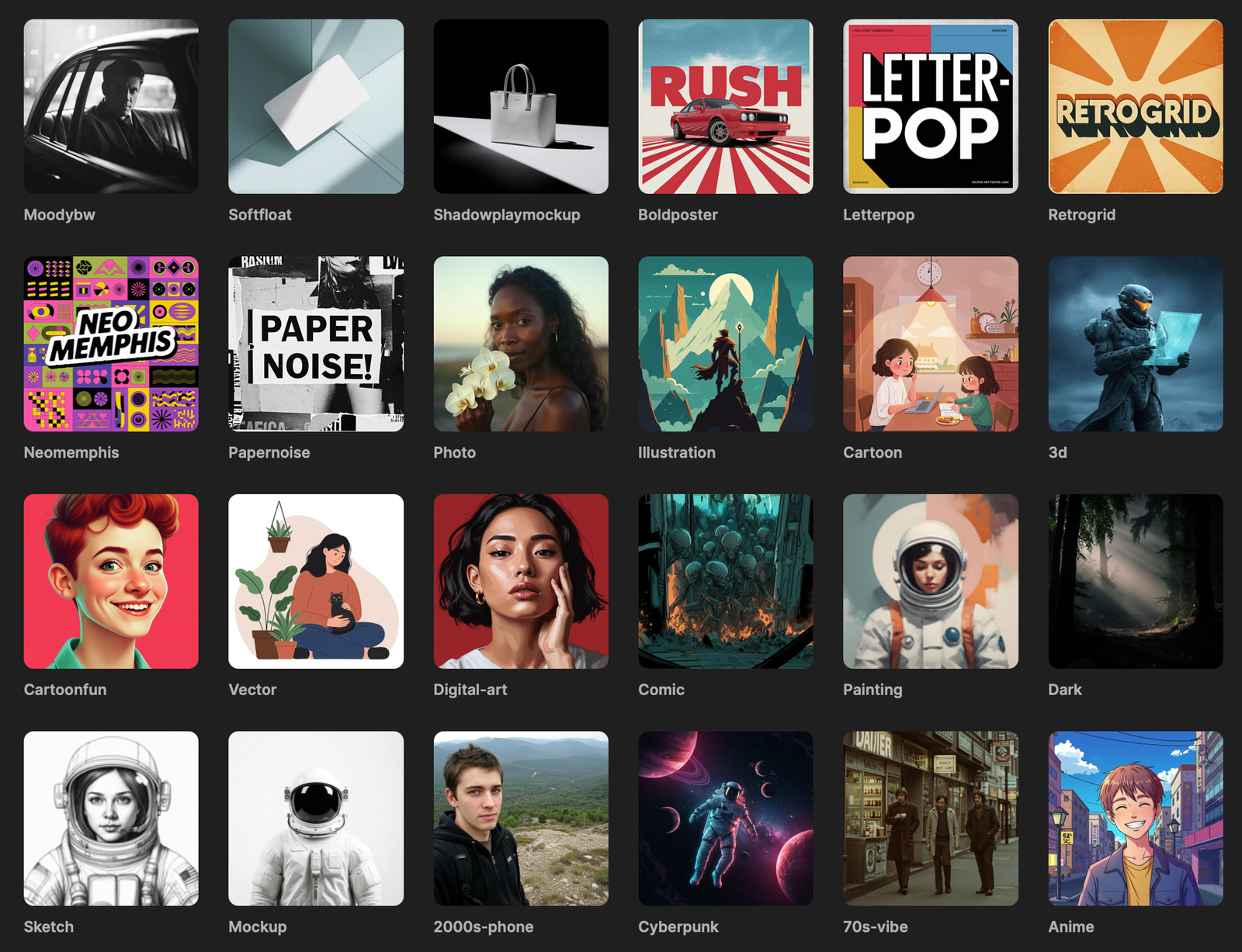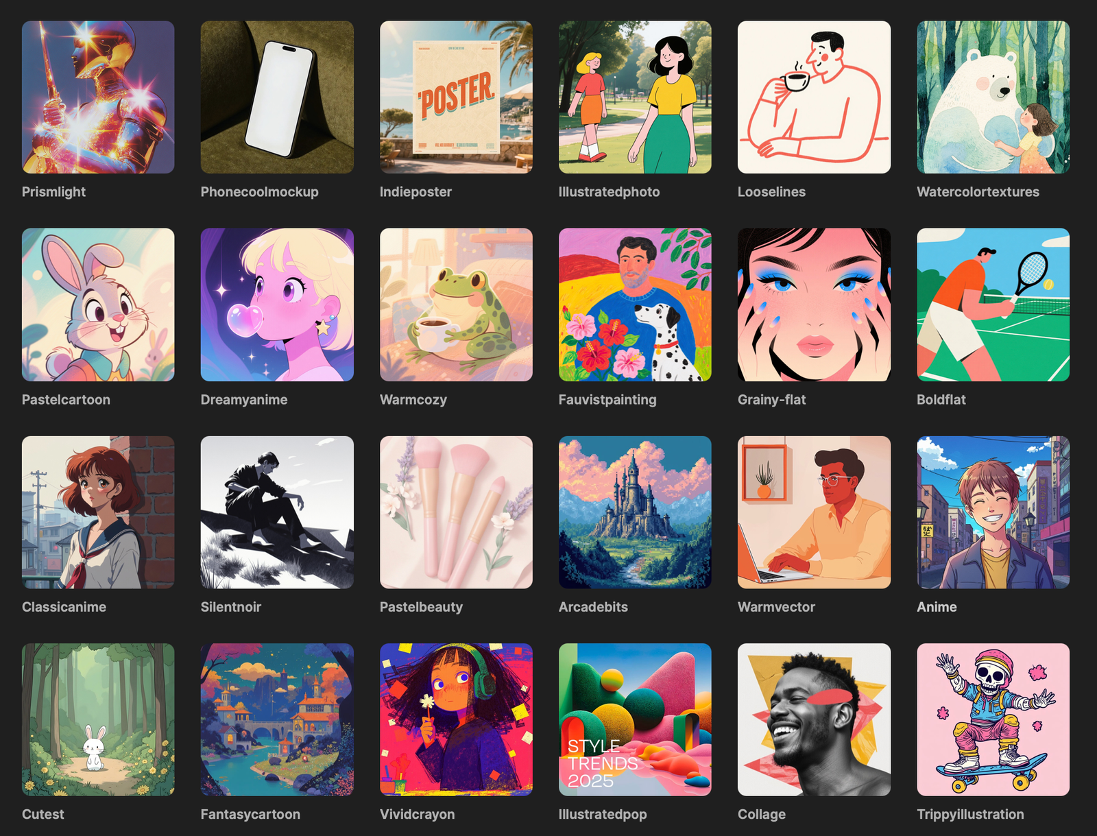 Estilos nacidos en la era de la computadora y la cultura pop, perfectos para portadas, avatares o conceptos futuristas.