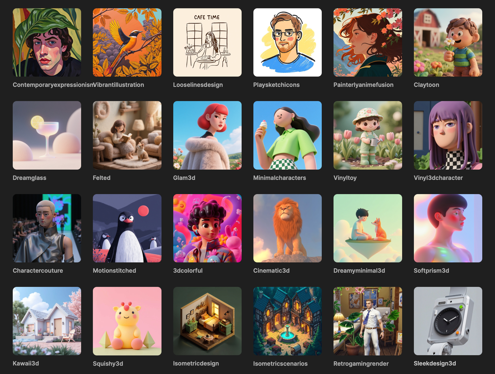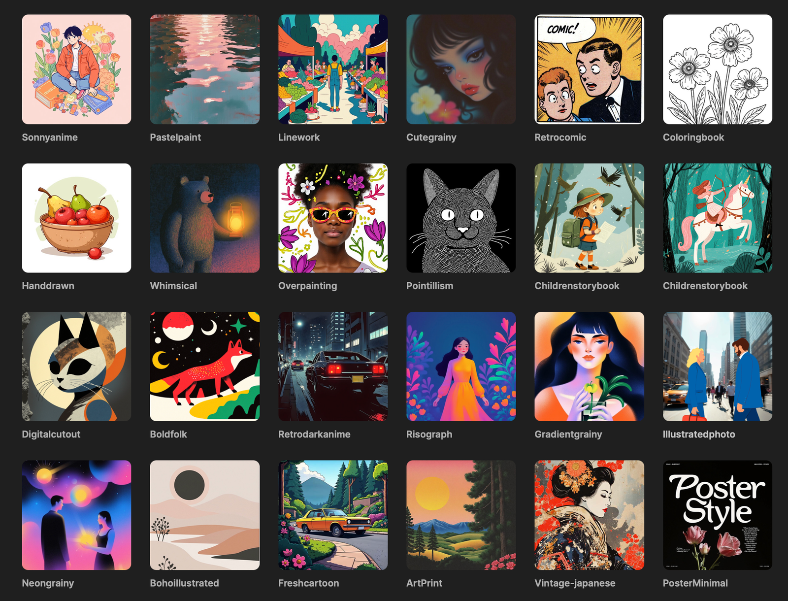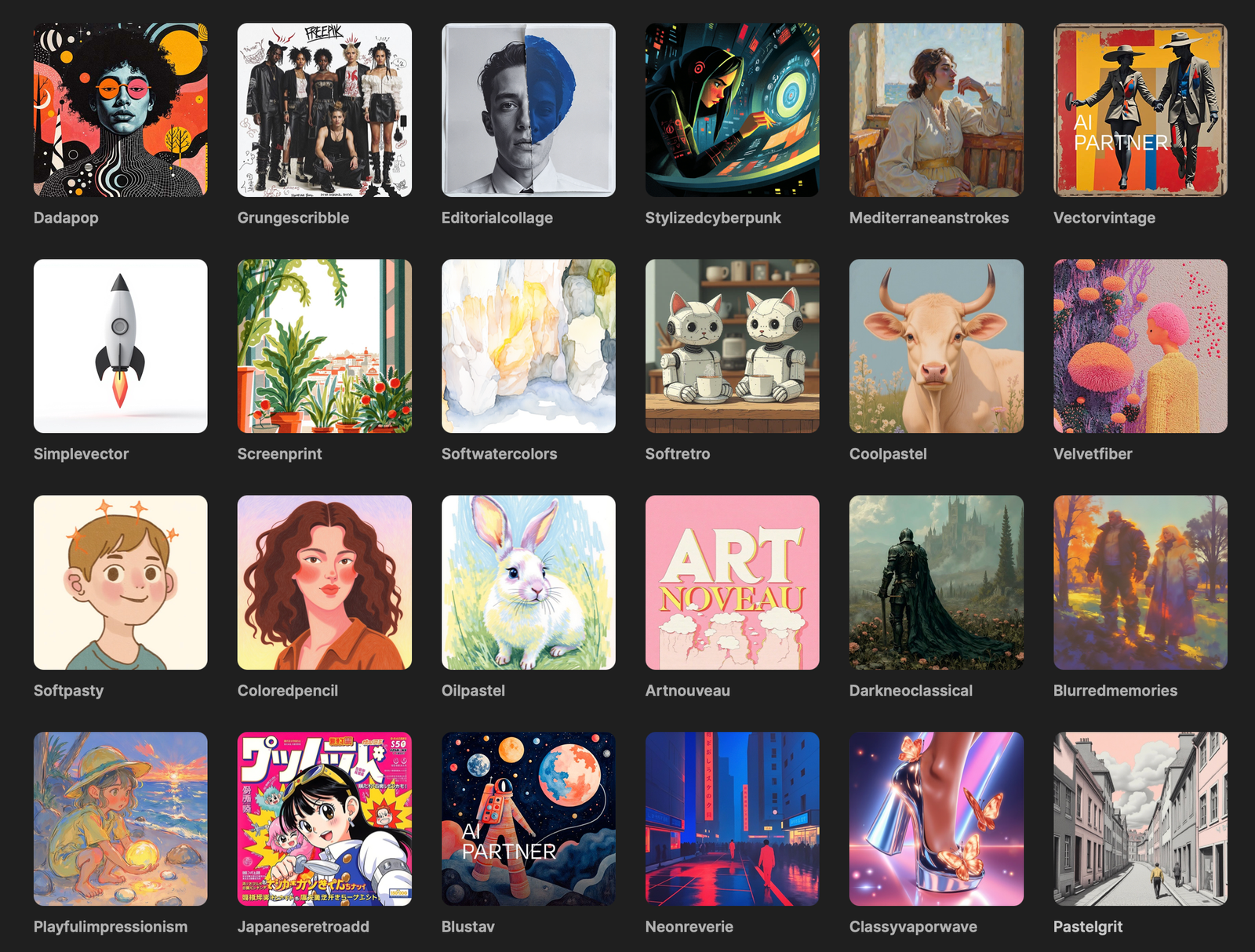 Estos estilos imitan técnicas clásicas de pintura y dibujo. Son ideales para dar un toque humano y artesanal a tus generaciones.